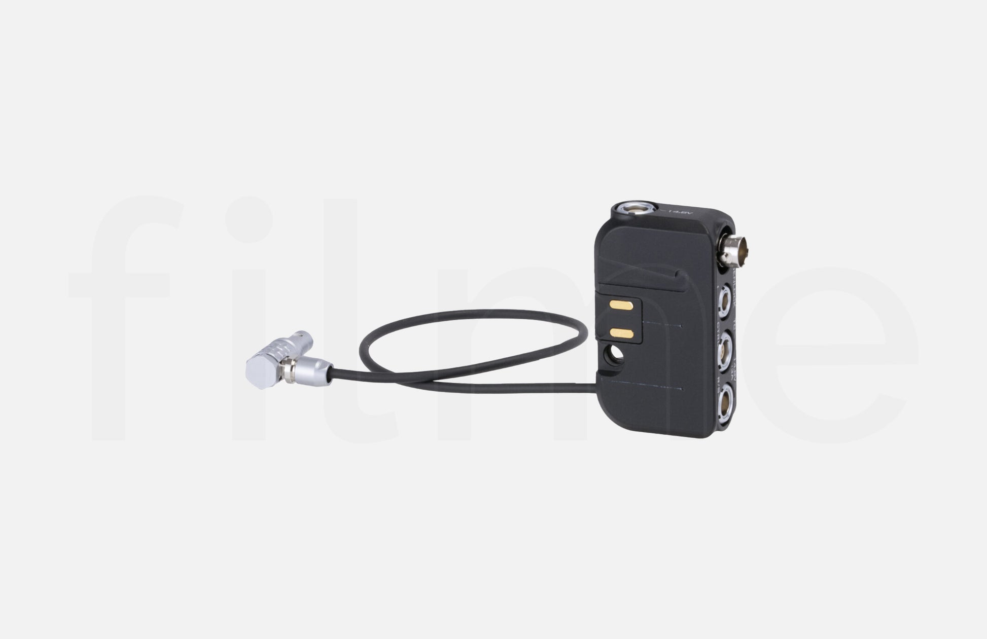 Options de montage du module. Le module peut être monté à différents endroits sur la cage de la caméra, comme la poignée du dessus, la plaque de montage du dessous ou la fente intégrée sur la plaque de la batterie. Lorsque le module est monté à d'autres endroits que la plaque de la batterie, il peut être alimenté via un port d'entrée Lemo à 2 broches. Ce positionnement polyvalent du module lui permet d'être adapté à presque toutes les configurations de caméra.